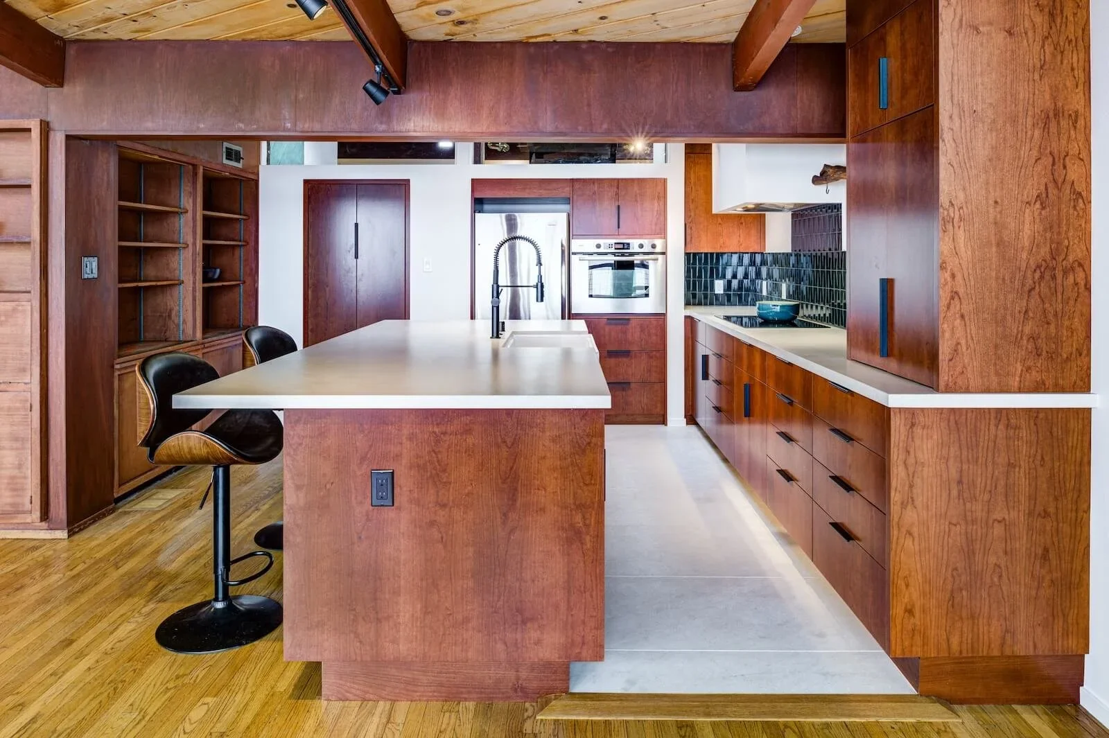 In our Summit Berkeley kitchen remodel, we preserved the home’s original wood paneling and designed modern cabinetry and appliances around it. The result? A kitchen that feels warm, authentic, and completely functional.