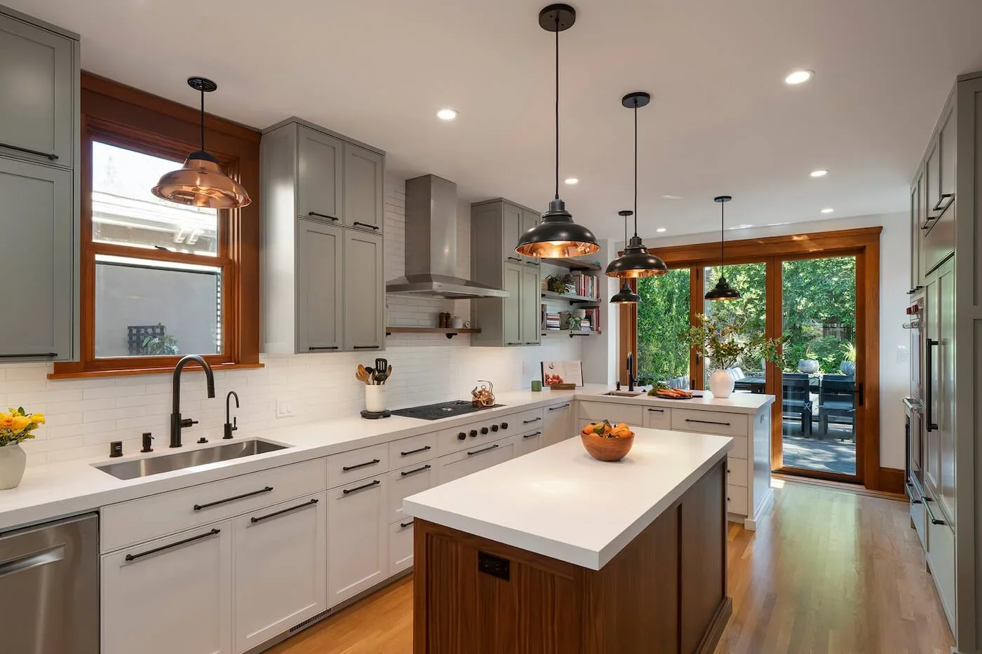 One remodel we worked on retained the home’s original windows and hardwood floors while opening the kitchen layout and modernizing the finishes. The result was a bright, functional space that still felt rooted in the home’s history.