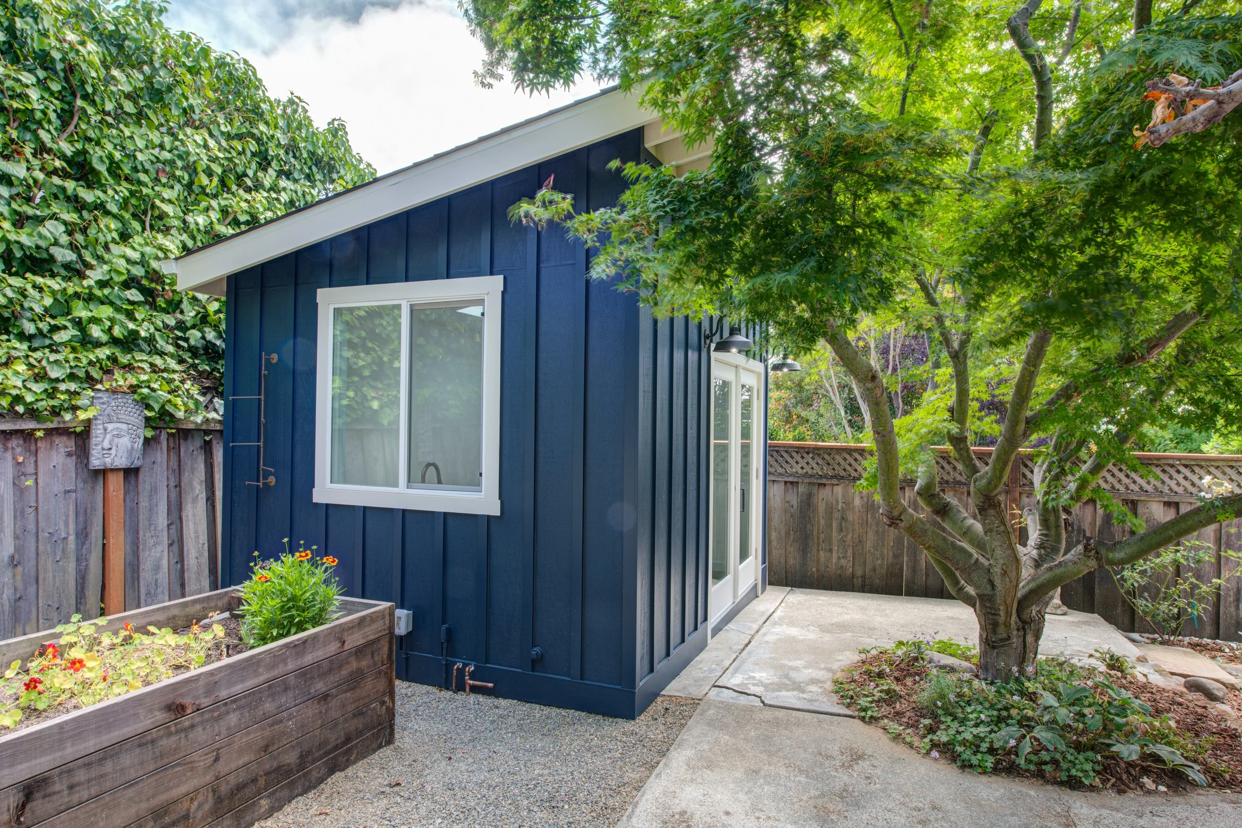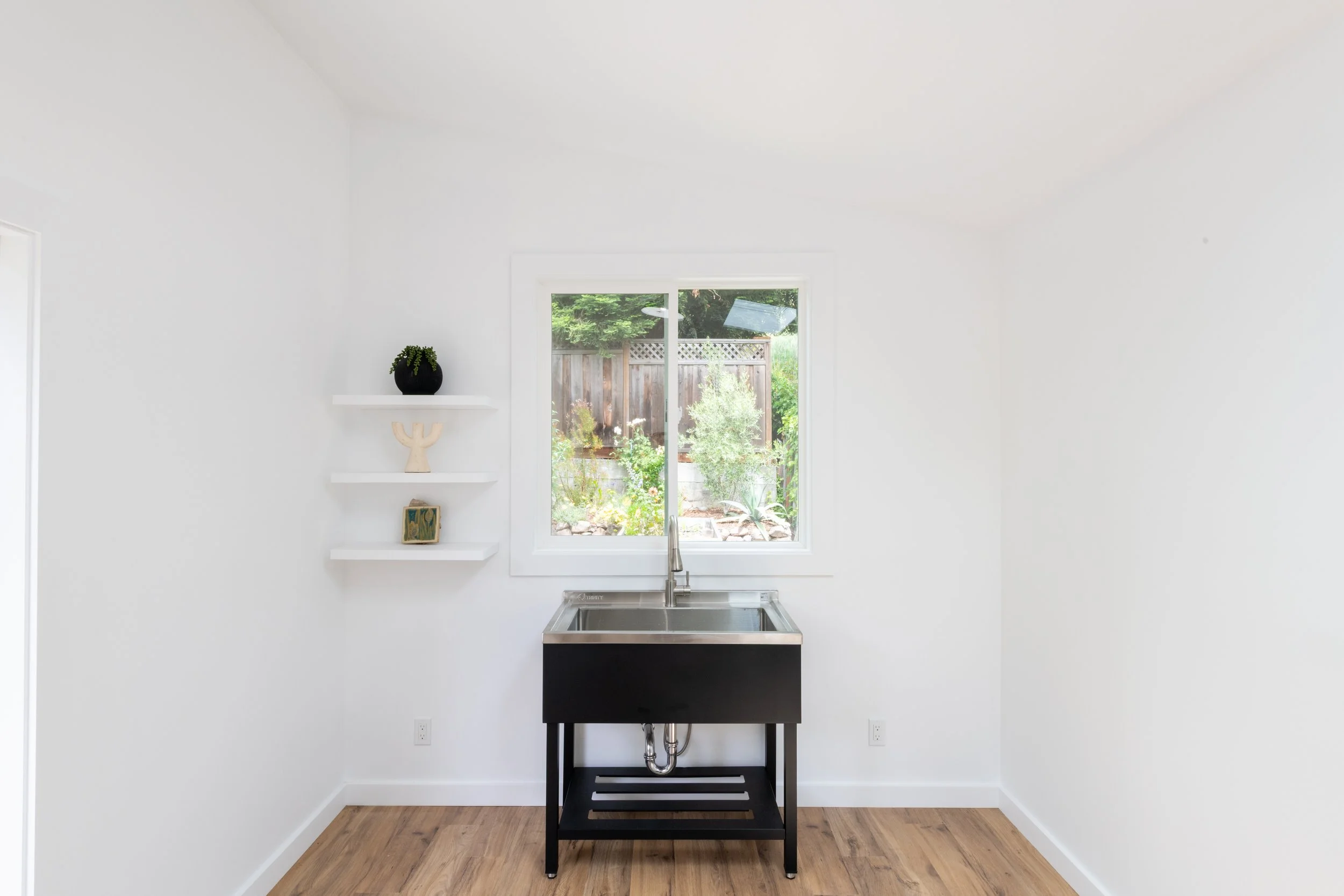 This backyard studio project gave our client something she had long been dreaming of: a dedicated space to support her work as a natural fabric dye artist. Before the renovation, she was working out of her kitchen, constantly having to protect countertops and clean around daily life, all while handling highly staining materials like iron and turmeric.